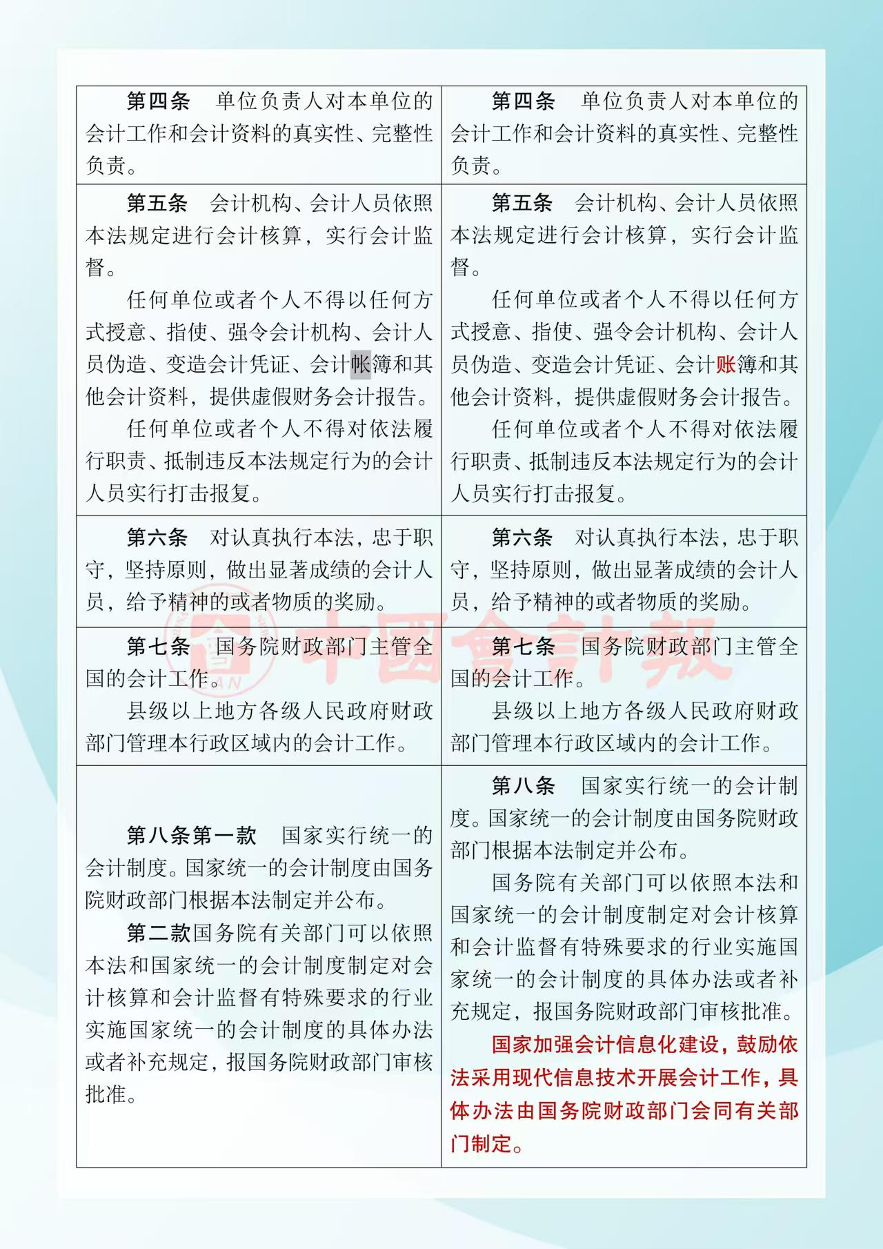 《中華人民共和國會計法》修改前后對照表(2024年)