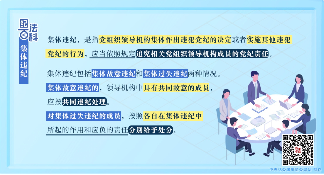 集體違紀(jì),是指黨組織領(lǐng)導(dǎo)機構(gòu)集體作出違犯黨紀(jì)的決定或者實施其他違犯黨紀(jì)的行為,應(yīng)當(dāng)依照規(guī)定追究相關(guān)黨組織領(lǐng)導(dǎo)機構(gòu)成員的黨紀(jì)責(zé)任。