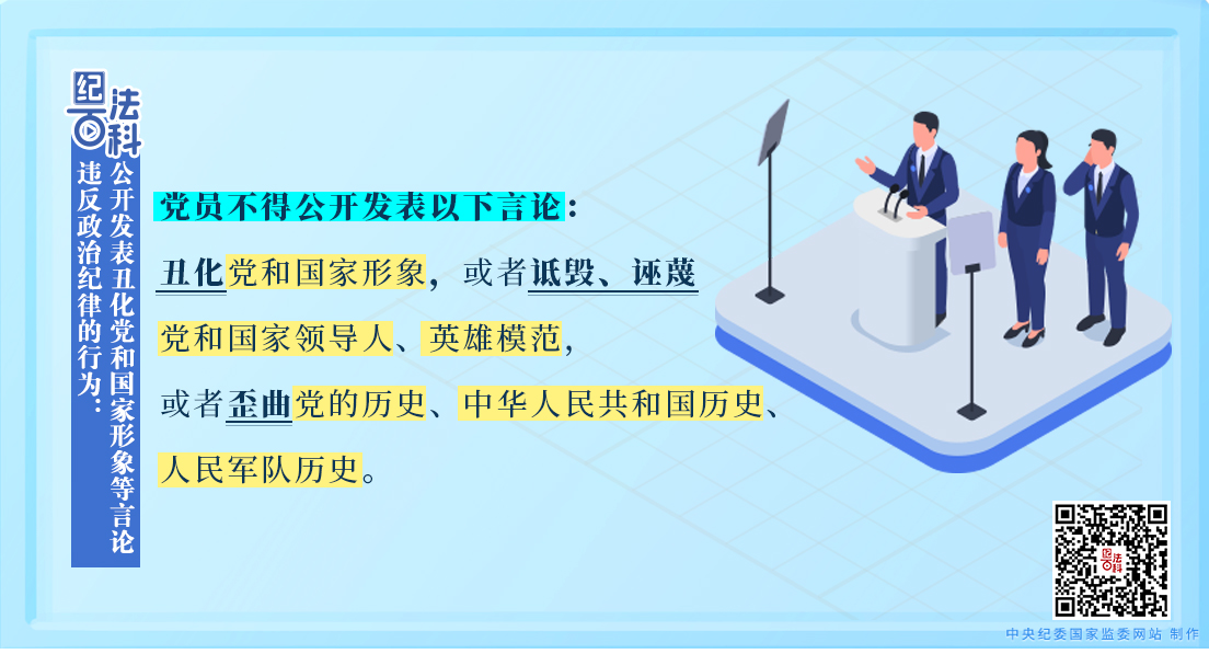• 紀(jì)法百科丨違反政治紀(jì)律的行為:公開發(fā)表丑化黨和國(guó)家形象等言論