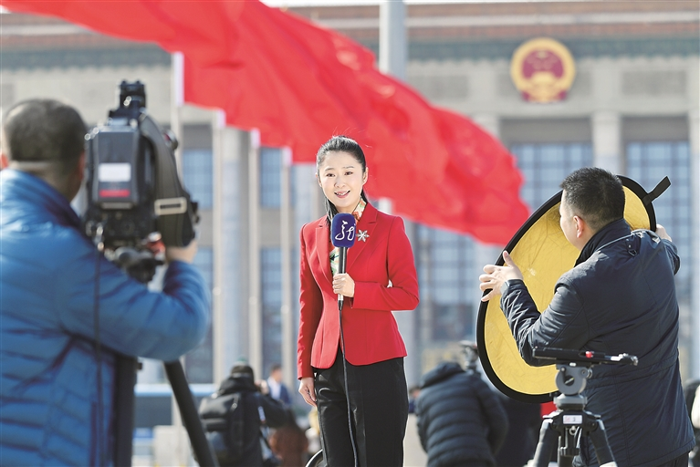 •   堅持團結(jié)穩(wěn)定鼓勁、正面宣傳為主,才能唱響主旋律,傳播正能量,不斷鞏固和壯大主流思想輿論,弘揚社會主義核心價值觀,為培育積極理性社會心態(tài)、促進社會和諧穩(wěn)定提供精神養(yǎng)料。圖為今年全國兩會期間,媒體記者在人民大會堂外進行報道。圖片來源:視覺中國